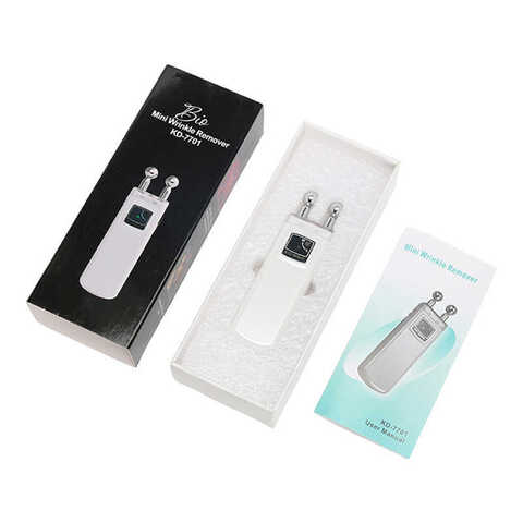 Небольшая сила тока исключает возможность негативных последствий, поэтому процедура вполне может быть применена в домашних условиях. Новый современный косметический аппарат KD-7701 разработан  для борьбы с признаками старения кожи вокруг глаз, а также лица и шеи. Маленький, портативный прибор поместится в любой женской сумочке и станет прекрасным попутчиком и компаньоном. Прибор воздействует на кожу двумя электродами-шариками, а режим интенсивности каждый выбирает в зависимости от собственных ощущений. Благодаря удобной форме прибора KD-7701 уход за собой теперь не занимает много времени.