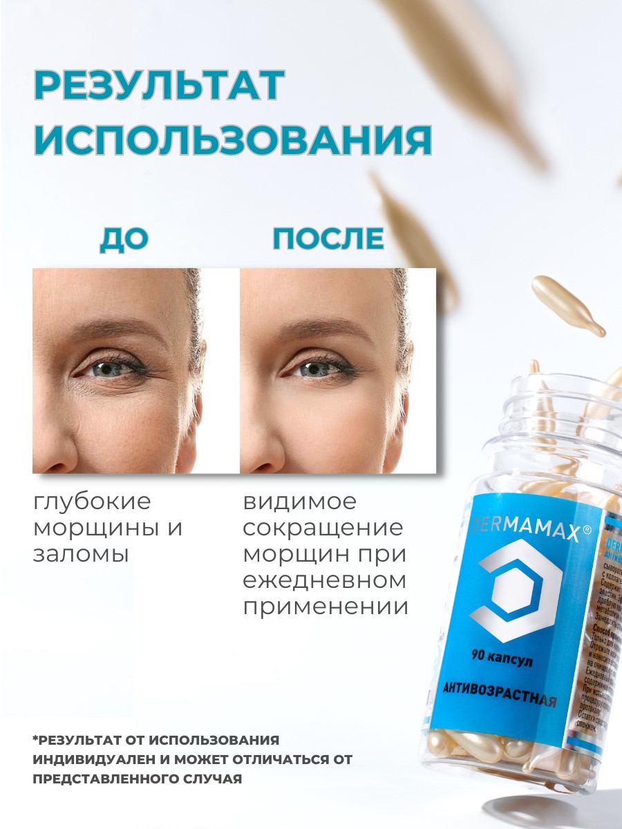 Капсулы с витамином Е, коллагеном, эластином, помогают подтянуть кожу, сохранить гладкость кожи, разгладить морщинки, способствует клеточному метаболизму, замедляет старение.